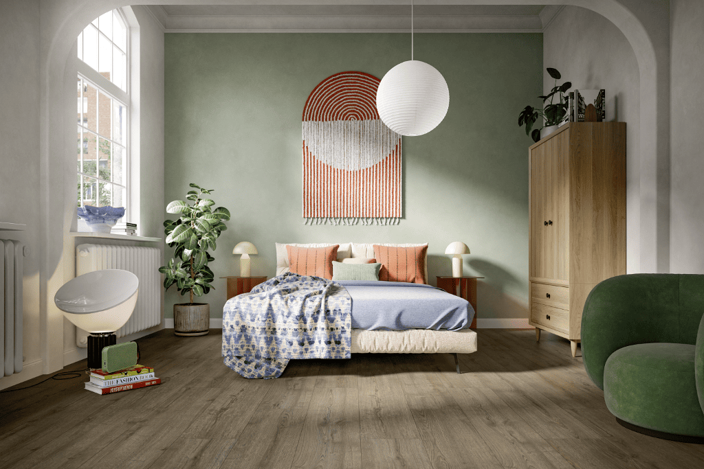 El Roble Turín Oscuro es una elección perfecta para salones, dormitorios, oficinas y espacios comerciales, ofreciendo un suelo efecto madera oscura, moderno y atemporal, capaz de elevar el estilo de cualquier estancia.